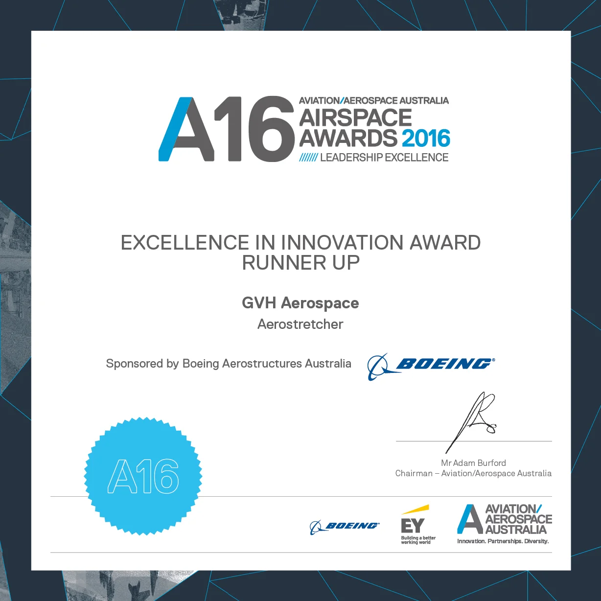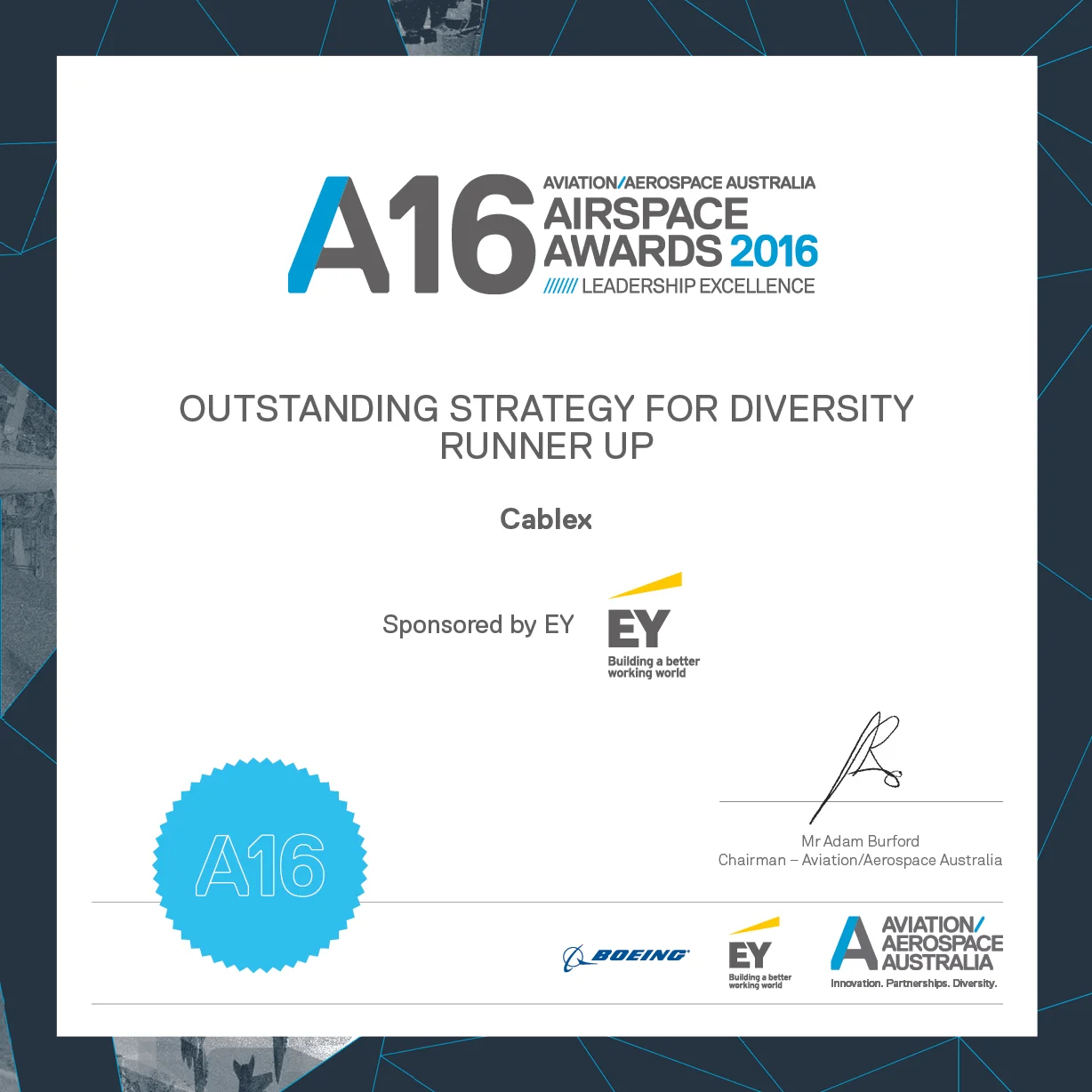Profiled as A/AA AIRSPACE Awards Category Sponsor: in materials associated with the Awards and at the Gala Dinner evening on 22 April 2021.